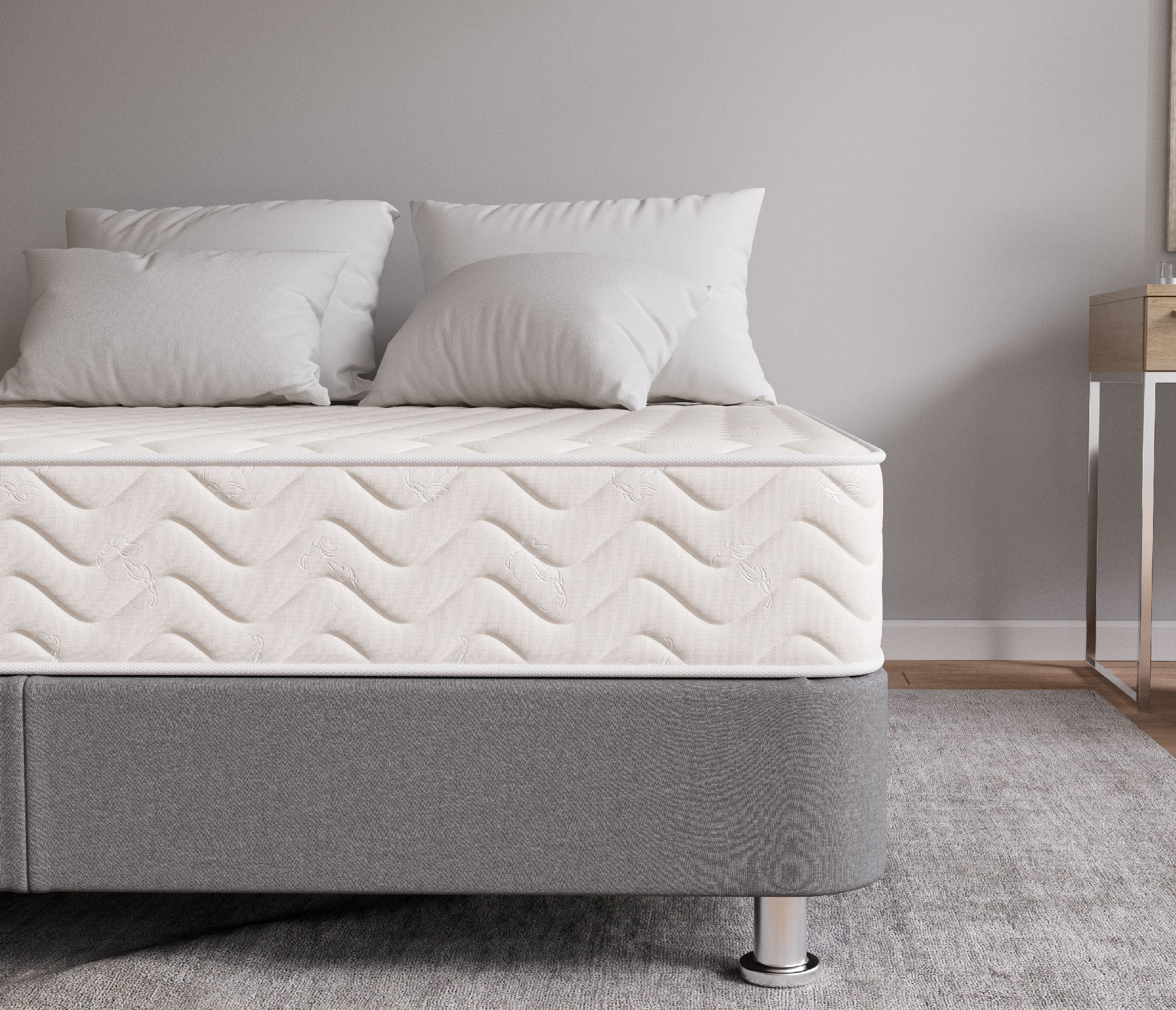 Основой служит зависимый пружинный блок Боннель. В нем все конусные стальные пружинки (126/м2) соединены между собой и скреплены при помощи специальной рамы. Изделие способно выдерживать высокие нагрузки. Над блоком в 1см расположена латексированная кокосовая койра. Это покрытие на основе жестких кокосовых волокон, но смягченных натуральным латексом. Наполнитель улучшит осанку, поддержит корсет из мышечной ткани.